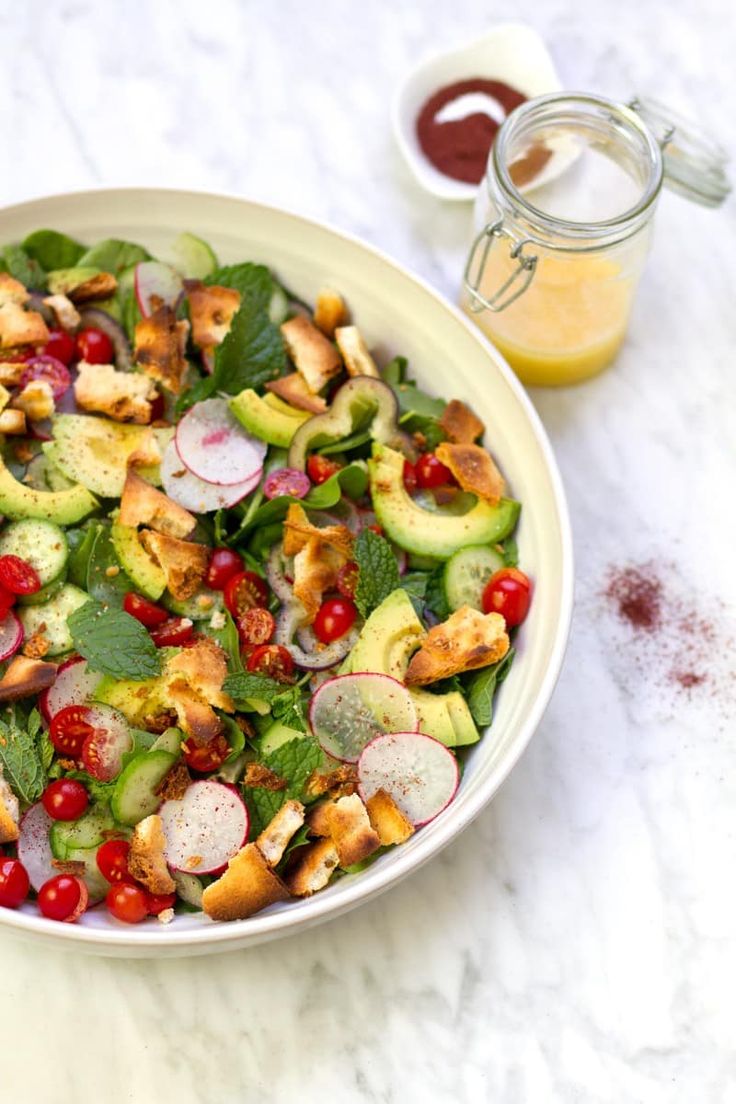Fattoush pairs beautifully with hummus, baba ghanoush, grilled kebabs, or falafel. It can be served as an appetizer, side dish, or even as a light lunch. Garnish with extra sumac or a drizzle of olive oil just before serving for visual appeal.